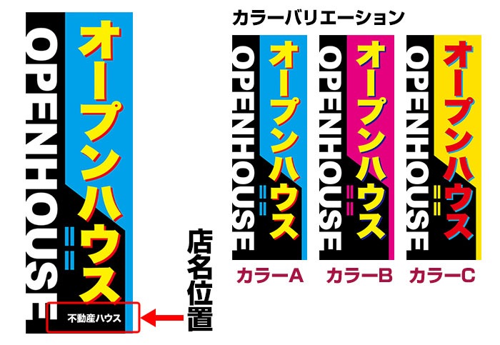 スリムのぼり旗「オープンハウス」 強化縫製/セミデザイン/450mm×1800mm