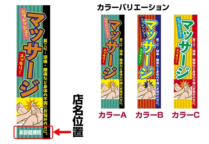 スリムのぼり旗「マッサージ」 強化縫製/セミデザイン/450mm×1800mm