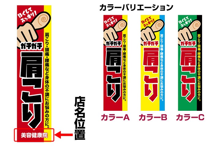 スリムのぼり旗「肩こり(マッサージ)」 強化縫製/セミデザイン/450mm×1800mm
