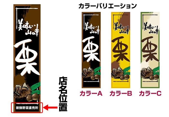 スリムのぼり旗「美味しい山の幸 栗」 強化縫製/セミデザイン/450mm×1800mm