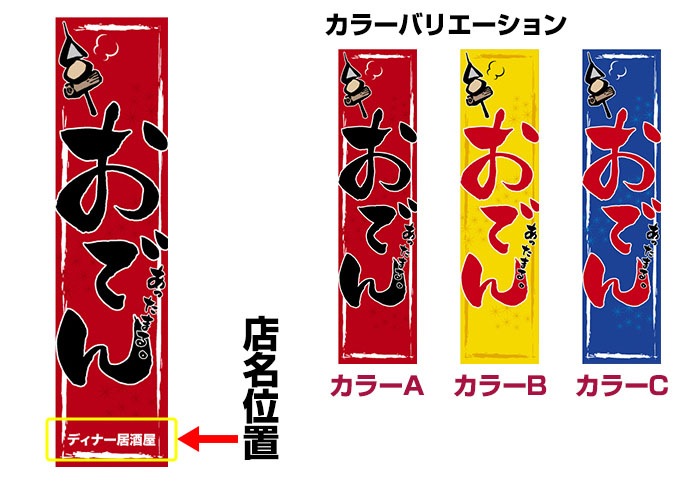 スリムのぼり旗「おでん」 強化縫製/セミデザイン/450mm×1800mm