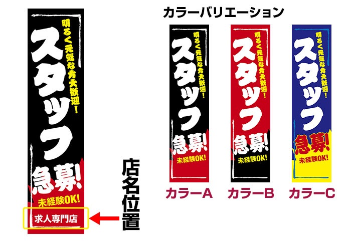 のぼり旗「スタッフ急募!」 強化縫製/セミデザイン/450mm×1800mm