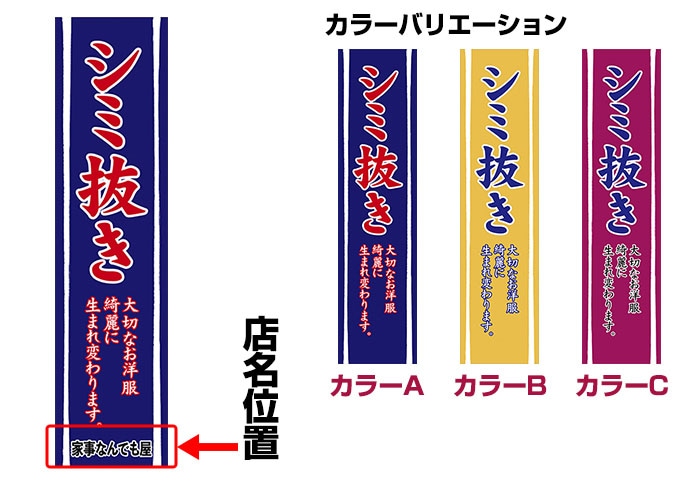 のぼり旗「シミ抜き」 強化縫製/セミデザイン/600mm×1800mm