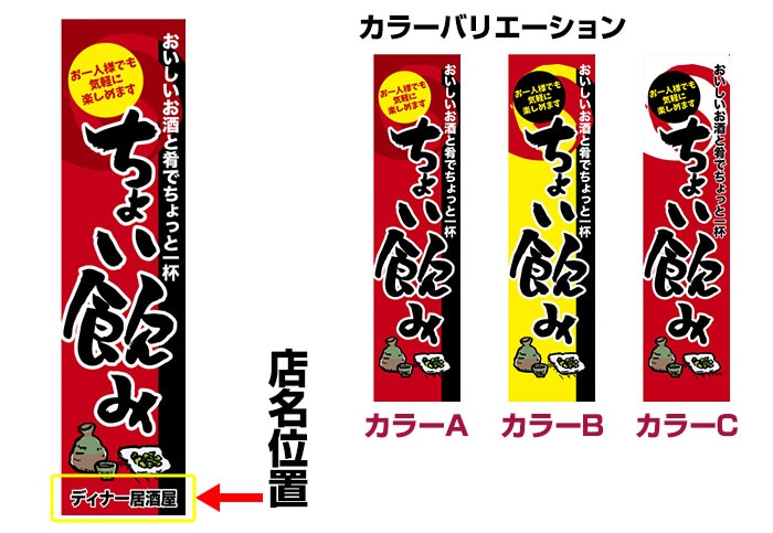のぼり旗「ちょい飲み」 熱裁断仕上/セミデザイン/450mm×1800mm